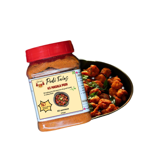 Inspired by the iconic South Indian "65" snack (Chicken 65, Gobi 65, Paneer 65, etc.), this mix delivers the quintessential tangy, spicy, and aromatic profile you love. Combining traditional whole spices with flours for crispiness, it creates a coating that's light yet satisfyingly crunchy.