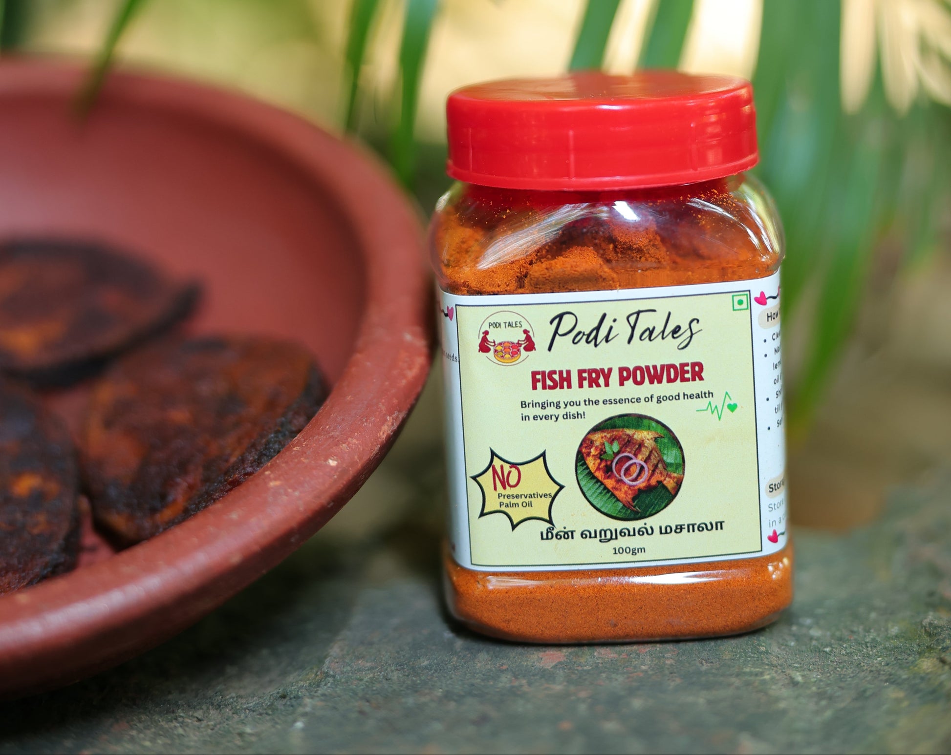 Elevate your home-cooked fish with our aromatic Fish Fry Masala—a balanced blend of spices that ensures a golden, crispy crust and bold, tangy flavor.