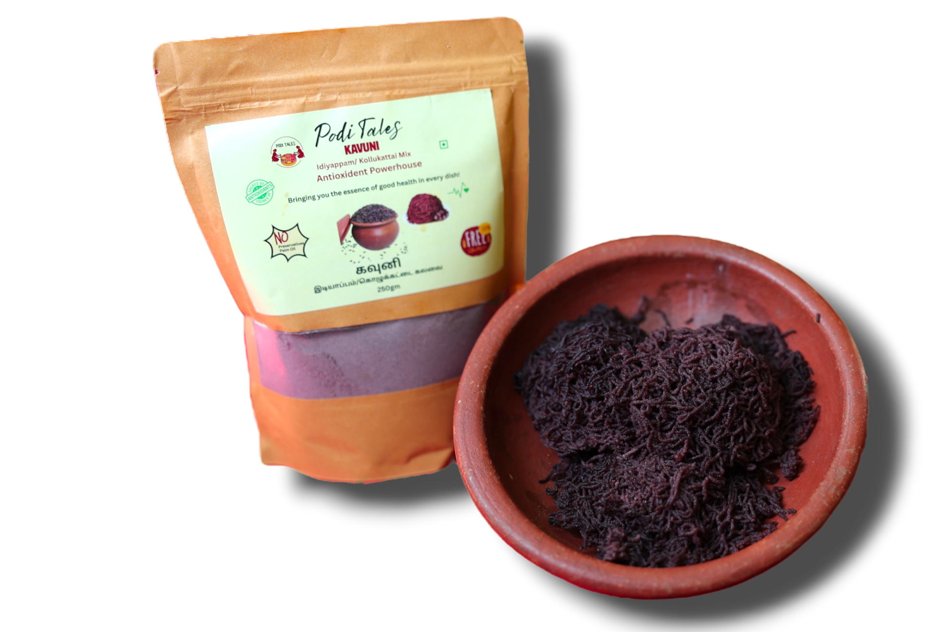 Transform your cooking with ancestral superfood—experience vibrant color, rich flavor, and health benefits of Karupu Kavuni in every idiyappam and kozhukattai!