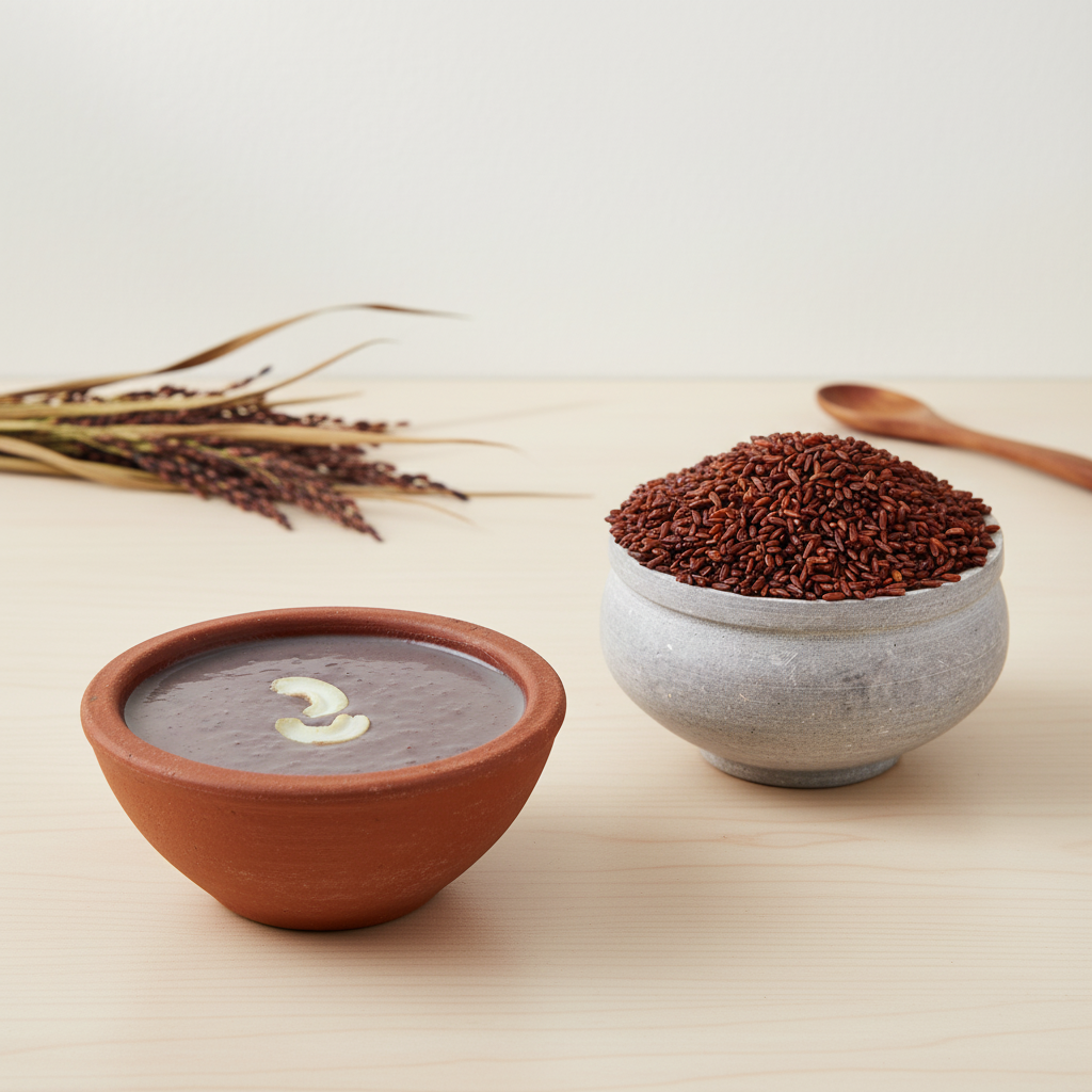 Soothing, fiber-rich porridge made from rare Kudai Vaazhai rice and digestive spices for gentle nourishment.