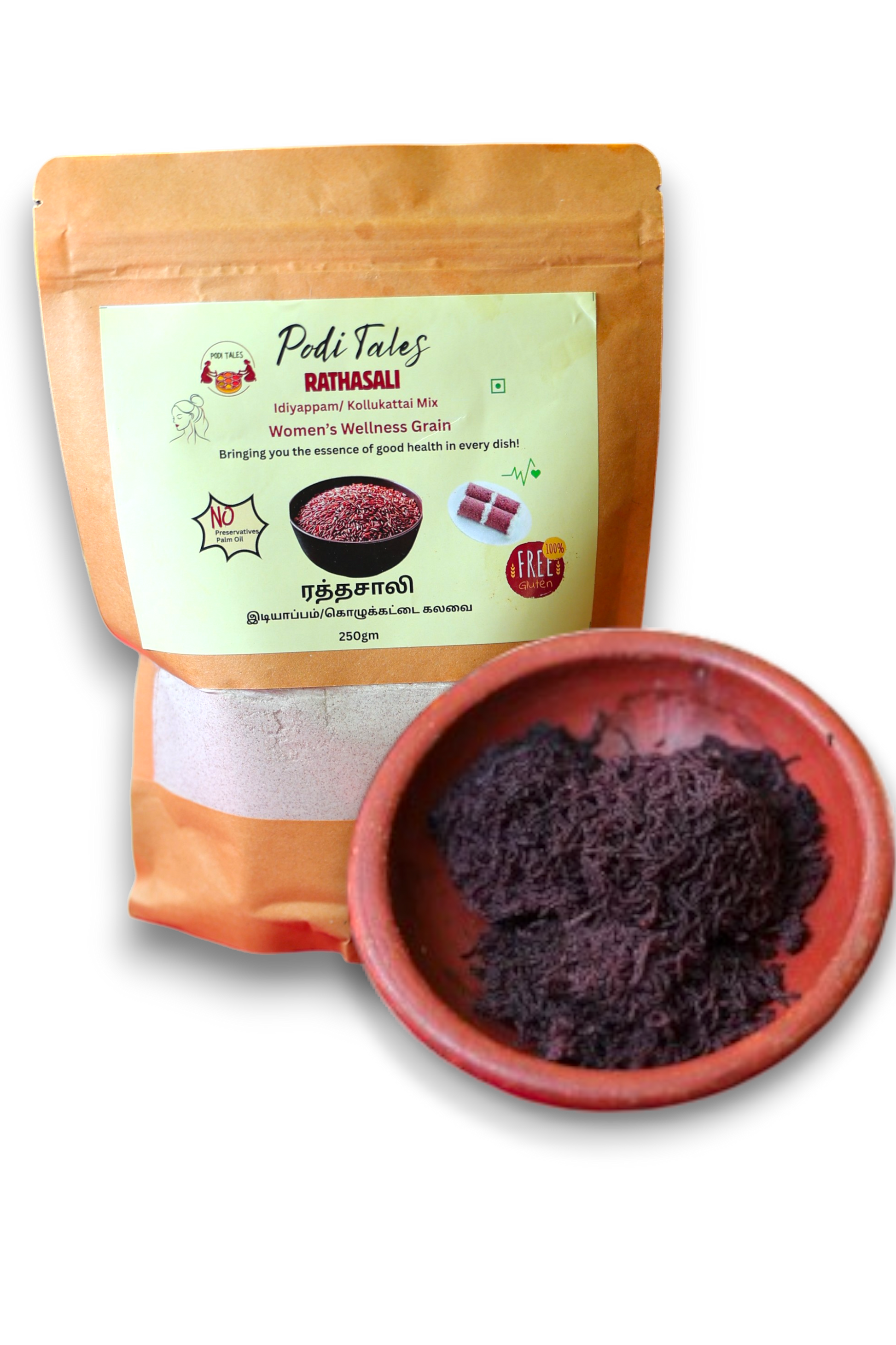 Indulge in the wholesome goodness of Rathasali rice—pure heritage red rice for vibrant idiyappam and flavorful kozhukattai.